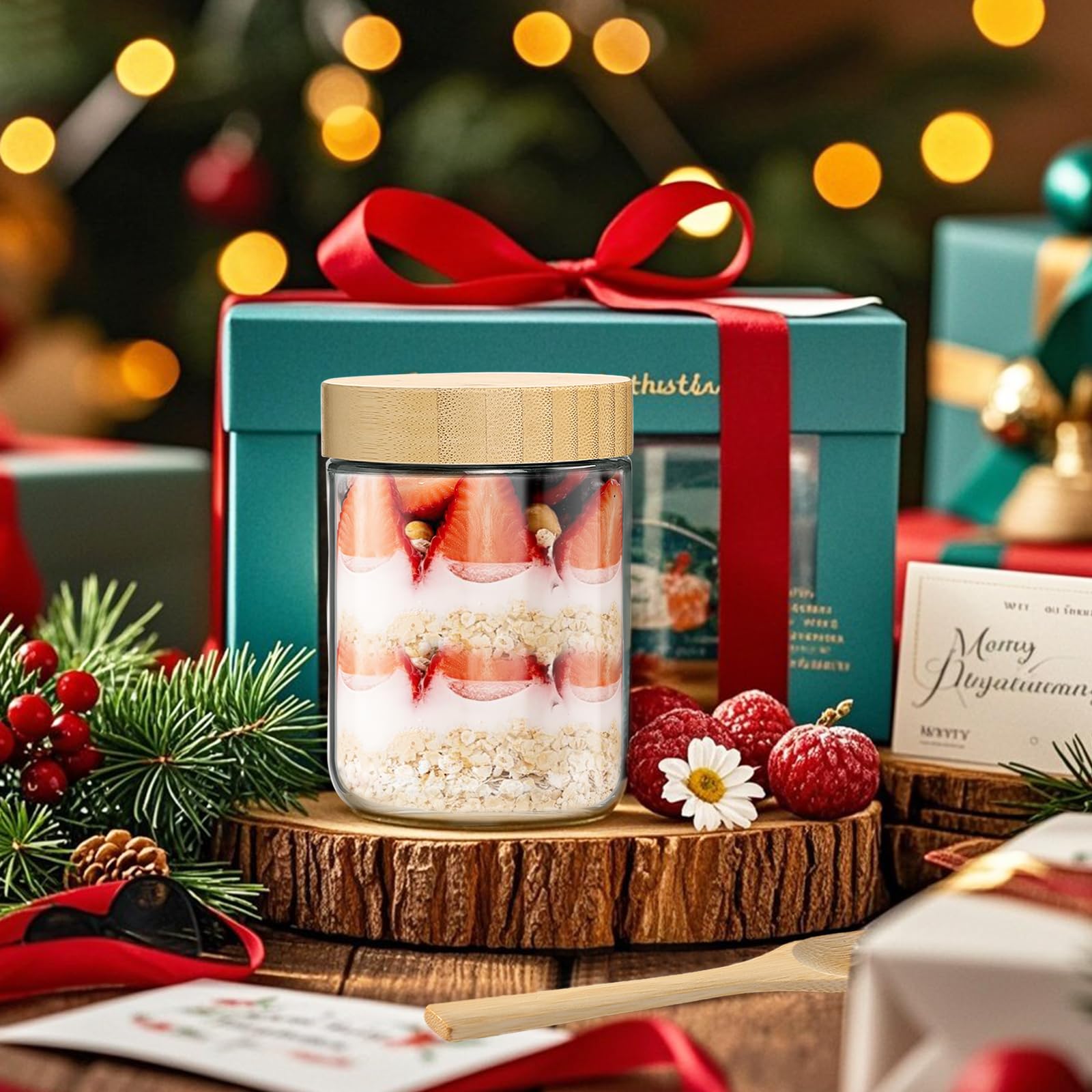 • Food-Grade Glass with Bamboo Spoons: Crafted from thick, lead-free glass, TBWIND 16oz Overnight Oats Containers jars are built for durability and clarity—ideal for showcasing fresh layers of yogurt, fruits, or oats. Each set includes 12 reusable bamboo spoons, perfect for enjoying overnight oats, salads, or snacks directly from the jar.