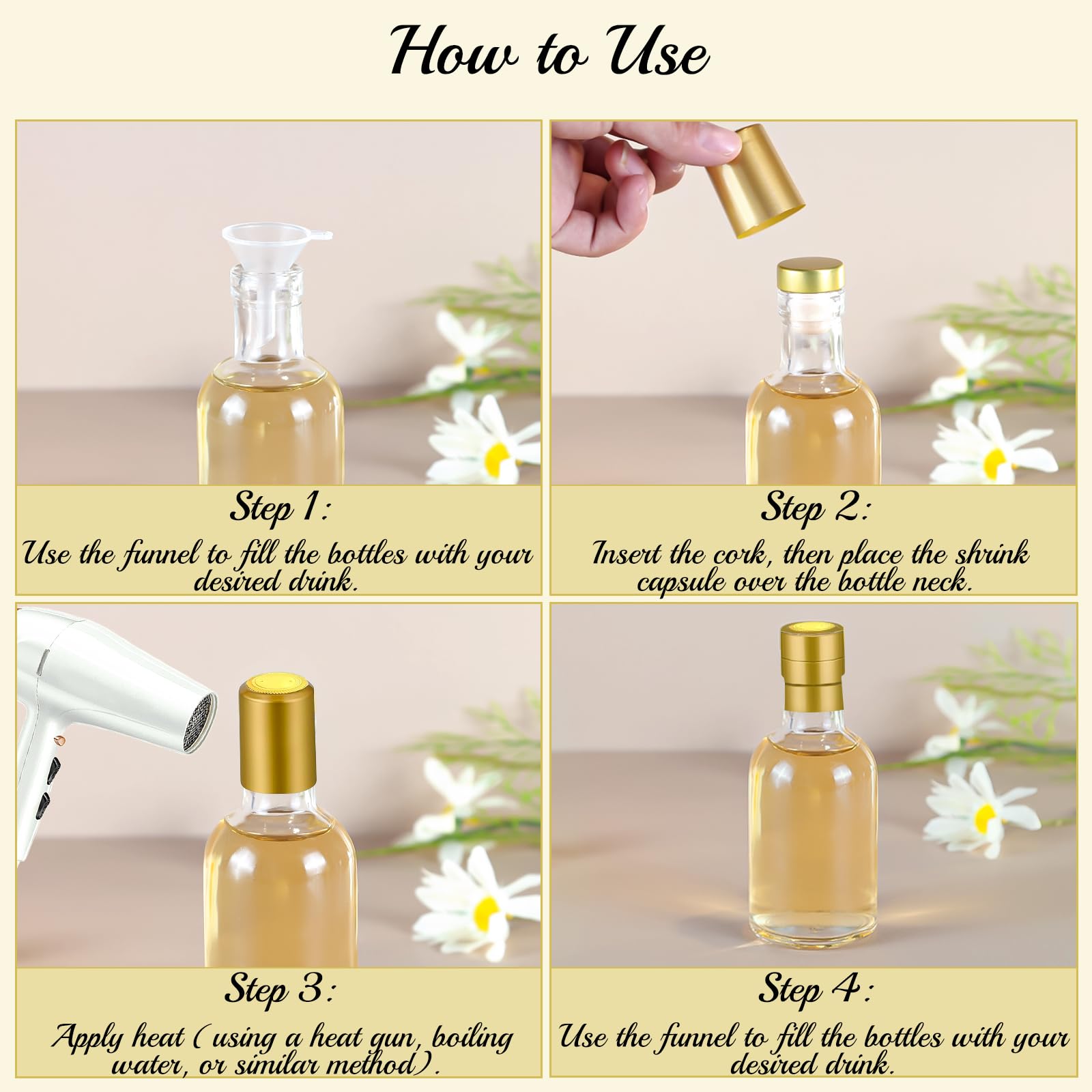 - Gift-Ready & Multi-Purpose: These elegant vintage-style small glass bottles are perfect for weddings, parties, and DIY projects. Use them as wedding favors, table décor, or homemade gift bottles filled with wine, infused oils, or colorful drinks to impress guests.